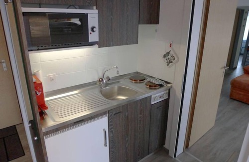 "Annex", 1-room studio 22 m2, on the ground floor. Practical and cosy furnishings: living/dining room with 2 fold-away beds and cable TV (flat screen). Exit to the terrace. Kitchenette (2 hot plates, mini-oven, electric coffee machine). Shower/WC. Large terrace. Terrace furniture. Partial view of the lake, the countryside and the resort. Facilities: baby cot. Internet (WiFi, free). Parking (1 car) at the house. Please note: non-smokers only. Door-to-door with Apartment Ramabrice CH6376.400.4.