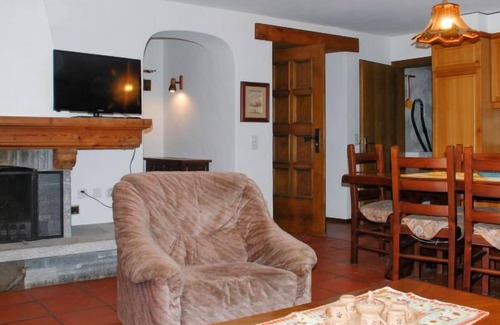 "App. Caraa di Masc ída", 3-room apartment 75 m2 on 2 levels on 1st floor. Rustic and cosy furnishings: open large living/dining room with open-hearth fireplace and cable TV (flat screen), radio. Open kitchen (4 hot plates, oven, dishwasher, kettle, electric coffee machine) with dining table. Bath/bidet/WC. Electric heating. View of the garden. Facilities: washing machine, children's high chair, baby cot for up to 2 year olds (extra), hair dryer. Internet (WiFi, extra). Please note: suitable for families. Non-smokers only. Maximum 1 pet/ dog allowed. INCARTO: IN ELABORAZIONE