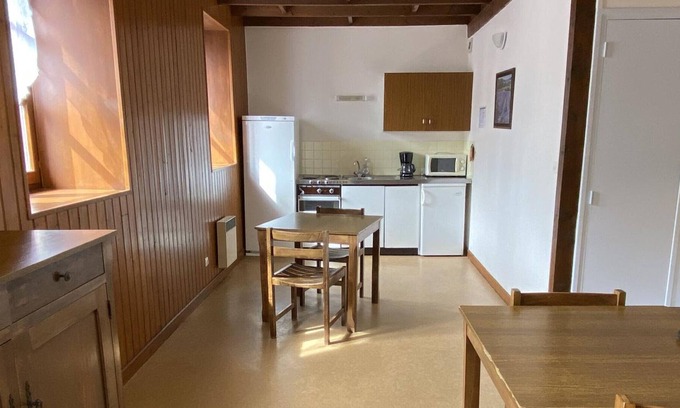 Communal gîte in apartment in the village, on the 1st floor of an independent house with meeting room, fireplace, games room, washing machine shared with the other gîtes in a laundry in the basement, shared courtyard. Living room/kitchen area, 1 blind bedroom with 2 single beds including 1 bunk bed serving 2 bedrooms, one with 1 double bed and the other with 2 single beds. Bathroom (bath), separate toilet. Electric heating. Guest rooms on site. Vichy 32 km. Tourist tax. Saint Clément lake 16 km. Non-smoking cottage. There are approximately 10 steps to climb from the courtyard/parking lot to all accommodation. Premises equipped for digital reception. Bathroom linen provided with sheet rental. Heating and electricity payable by the customer to be paid on site at the end of the stay. Flat screen television, Optional cleaning, Optional linen, Electric heating, Garden furniture, Microwave, Wifi or Internet, Garden, Last minute rental, conv, Parking. Option to be paid on site: - Optional end-of-stay cleaning: €80. - One pair of sheets per bed. : €10. Property managed by a professional. Unless stated, services such as cleaning, bed linen, towels etc. are not included in the price of this rental. If pets are allowed (information in the advertisement), charges may be applicable. Only equipment mentioned in this advertisement are present. Equipment not mentioned are not considered to be present.