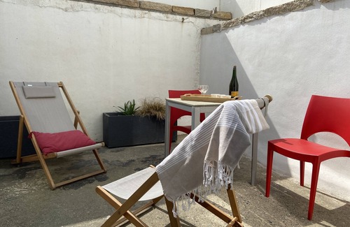On the ground floor of a Bigoudene house, enjoy this apartment (35m²) renovated in 2018 comprising a living room, a bedroom, a bathroom, separate wc. At the back, you have a west-facing courtyard.