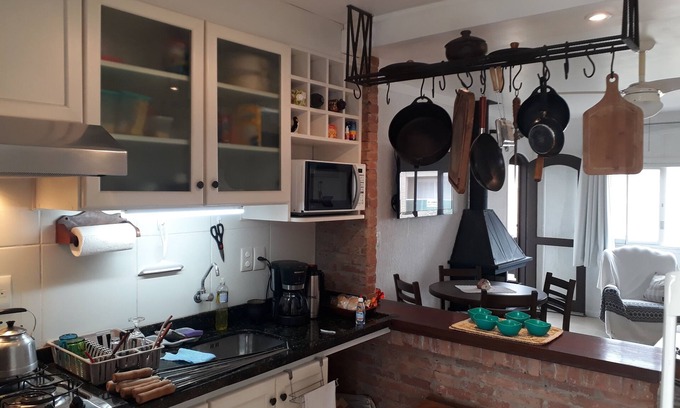 Great apartment in Atlântida, 3 bedrooms, one suite, kitchen, barbecue, fireplace, balcony, closed garage, ceiling fans, air, cond. all use equipment, microwave, blender, coffee maker, etc., etc., etc. I rent fortnightly, or just Christmas / New Year's Eve minimum of 10dd. I do not rent to groups. Only family, maximum 06 people. Christmas / New Year R $ - Other dates R $ / Daily. Close to all resources. Beach, mini markets, pharmacies etc, all on foot. Questions and proposals for longer periods please contact us.
