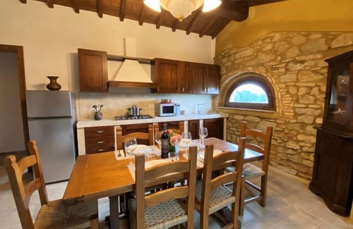 This carefully restored complex is located in the middle of the fields of the Val di Cecina, a few steps from the river of the same name. Much attention was paid to the construction of the swimming pool, where a hydromassage ( about 11 people) and a children's pool carved into the stone were created. Resort "Podere la Querciola", 2 storeys, renovated in 2021, surrounded by meadows and fields. In the district of Casino di Terra 11 km from the centre of Guardistallo, 14 km from the centre of Cecina, in a secluded, quiet position, 16 km from the sea. For shared use: property with plants and trees, swimming pool (6 x 11 m, depth 150 cm, seasonal availability: 01.May. - 15.Oct.). Children's pool, outdoor shower, hot tub, garden furniture, barbecue. In the complex: WiFi, washing machine (extra). Motor access (700 m via unmade road). Parking. Shop 11 km, restaurant 2 km, bar 2 km, bus stop 1.1 km, sandy beach "Marina di Cecina" 16 km. Nearby attractions: Volterra 24 km, Pisa 70 km, Firenze 100 m.