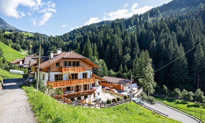 In Proves/Proveis, the holiday apartment Bachwiesl Hof Ocker offers an excellent view of the Alps. The 30 m² property consists of a living room, a well-equipped kitchen, 1 bedroom and 1 bathroom and can therefore accommodate 2 people. Additional amenities include high-speed Wi-Fi (suitable for video calls) as well as a TV. A baby cot and a high chair are also available.