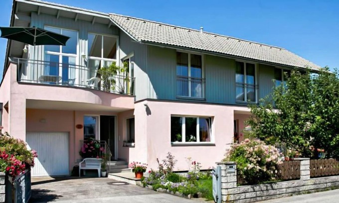 Pinsdorf/Gmunden: Modern, comfortable 2-family house "Bammer". On the outskirts, 250 m from the centre of Pinsdorf, 2 km from the centre of Gmunden, in a sunny position, 2 km from the lake. For shared use: garden, orchard. In the house: central heating system. Motor access to the house. Parking (limited number of spaces) at the house. E-charging station. Grocery 250 m, restaurant 100 m, bus stop 250 m, public bathing area 2 km. Tennis 300 m. Parking spaces for max 2 cars.