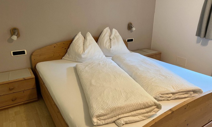 The holiday apartment Unterlacherhof Bergkristall 2 with step-free interior is located in San Giacomo and impresses guests with its view of the mountain. The 45 m² property consists of a living room with a sofa bed for 2 people, a kitchen, 1 bedroom and 1 bathroom and can therefore accommodate 4 people. Additional amenities include Wi-Fi with a dedicated workspace for home office, a TV as well as children's books and toys. Furthermore, a table tennis table is available on the property. A baby cot and a high chair are also available. This accommodation does not offer: air conditioning. This vacation rental features a private balcony for your evening relaxation.