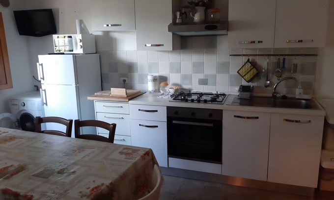 The apartment, ground floor of a typical Italian house with exposed bricks, is ideal for a couple with 1/2 children or friends who seek tranquility and relaxation using the garden and an outdoor stoneware platform with table and chairs. The apartment consists of kitchen, bathroom and 2 bedrooms divided by a wooden wall (confidentiality is limited). Deck chairs are available for sunbathing. The house is located on the hill in front of the sea away from the noise of the coast but can be reached in 10 minutes. It is strategically located near the water parks, the sea and the villages of Romagna.