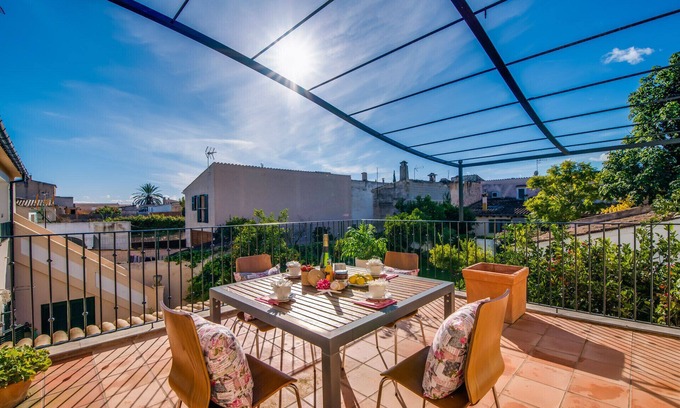 Binibonaire is the name of this beautiful apartment in the old town of Binissalem, a town located in the center of Mallorca, surrounded by the mountains of the Tramuntana Sierra.In this careful apartment, tranquility, plenty of space, and brightness await you.It is mainly characterized by its spacious terrace and beautiful views, and also by its large windows in the living room and kitchen, thus enjoying natural light during the day. The kitchen is fully equipped with oven, microwave, dishwasher... where you can cook with a gas stove.The department is of high quality and is furnished with great taste. The comfortable bathroom with shower has been recently renovated. As for the bedrooms, there is one with a double bed, another with single beds, and another with two single beds. One bedroom and the living room are equipped with air conditioning. Additionally, you will be able to use the garage to safely store bicycles. There is a free public parking lot 100 meters away.There is also a bicycle garage upon request (at no extra charge), which is shared with the owner.Binissalem is an excellent starting point for exploring the island, due to its central location especially for cyclists (bicycles can be parked in the garage), but also for culture enthusiasts, nature lovers, and wine lovers. The Tramuntana mountains are just around the corner and even the closest beach is located at a maximum of half an hour away.Only reservations for a maximum of two people are accepted (babies included).Deposit: 300 eurosThe eco-tax and the deposit are not included in the price. They must be paid in cash upon arrival.ETV/12477ESFCTU0000070220001164230000000000000000000ETV/124775