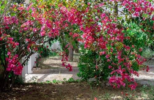 This vacation rental features a private outdoor space and a covered terrace. Guests can also enjoy access to a shared outdoor area with a pool, garden, barbecue, and outdoor shower.