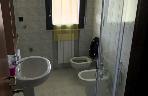 Weekly and monthly rental of an 85 sqm apartment in via Cheren 9 in Torre Pedrera di Rimini on the second floor, consisting of a living room with TV and sofa bed, a kitchenette complete with crockery, two bathrooms with shower and tub, two bedrooms one with a double bed and one with two single beds. The apartment is located 150 m from the sea and has two large terraces and a private garage for storing cars and bicycles. Torre Pedrera is a town that is only 10 minutes from the Rimini Nord motorway exit and no more than 15 minutes from the center of Rimini. Being also equipped with independent heating, during the winter it is also suitable for all those who are engaged in trade fairs or conferences.
