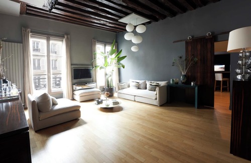 This 3 rooms, 70 m2 with mezzanine a real bathroom, a large beautiful designer kitchen, a nice desk and large sofa will make you feel in apartment comfortable and cozy.It is ideally located in the historic Marais district.Completely renovated in 2013, it boasts a stylish decor and all the modern conveniences, dishwasher, TV with international channels, and Internet connection. This apartment offers two beds of very good quality: On the mezzanine pretty thick mattresses and down two places, a large contemporary room, luxurious ,.This non-smoking apartment is on the 2nd floor of an old building typical of the Marais with a beautiful height under ceiling 3m60. Without vis-à-vis, it is adjacent to the famous department store Bazaar City Hall and you will find the place of the town hall downstairs. It offers a rare clarity, in central Paris. A few minutes walk, you can discover the place des Voges, the Notre Dame de Paris, the Louvre Museum, the Sainte-Chapelle, Ile Saint Louis, the Quays of the Seine and its booksellers. By metro, bus or RER, you can visit: the Musée d'Orsay, the Eiffel Tower, Versailles Castle in Disneyland (RER B).