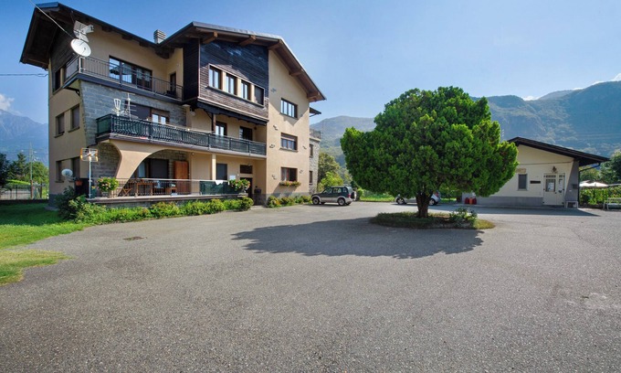 The holiday apartment Chez Sabrina in Champdepraz is the ideal accommodation for a relaxing holiday with a view of the Alps. The 100 m² property consists of a living room with a sofa bed for 2 people, a kitchen, 2 bedrooms and 1 bathroom and can therefore accommodate 6 people. Additional amenities include a TV. A baby cot is also available. This accommodation does not offer: Wi-Fi and air conditioning. This vacation rental features a private terrace for relaxing evenings.