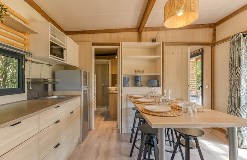 In a beautiful 3-hectare green setting, our campsite offers charming Savoyard-style chalets and mobile homes for rent by a lake. The lakeside village of Vaulnaveys-le-Bas is located at the foot of the Belledonne massif, just 20 minutes from Grenoble. It is a pleasant, privileged place with surprising charm. The swimming pool is open from 15/06 to 15/09. A hot tub and sauna are available for an extra charge, as well as massages by appointment. A parking space is available in front of each accommodation. We offer quality accommodation in chalets and mobile homes, as well as a charging station for electric vehicles. The village and campsite are the ideal starting point for many sports activities in the Belledonne massif. Bed linen is not included, but can be rented on site upon request. Cleaning is available as an option, with an extra charge to be paid on site.