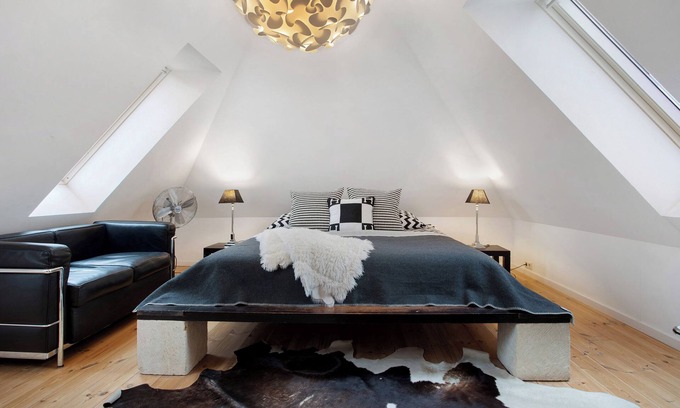 Cobusier: In the attic of the old forester's house there are two modern en-suite flats, named after their furniture designers Corbusier and Macintosh. A side entrance gives direct access to the guest rooms. Both flats can also be rented in combination. Guests of our suites are welcome to use the garden and the beer garden terrace.