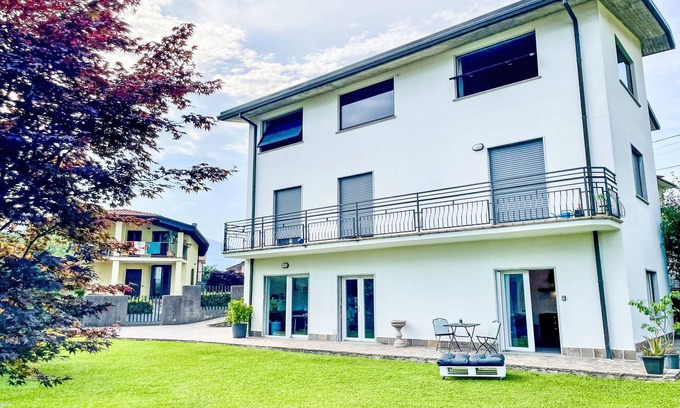 Modern apartment house, 3 storeys. 4 apartments in the property. 750 m from the centre of Abbadia Lariano, 9 km from the centre of Lecco, 63 km from the centre of Milano, in an elevated position in the residential district, 600 m from the lake. For shared use: property 500 m2 (fenced). Private: garden. Linen change (suppl. charge extra). Towel change (suppl. charge extra). Room cleaning on request (extra). Parking. Grocery 800 m, supermarket 2.4 km, restaurant 150 m, bus stop, railway station 850 m, pebble beach "Ulisse Guzzi Park" 850 m. Tennis 650 m, walking paths from the house 300 m. Nearby attractions: Parco Ulisse Guzzi, Civico Museo Setificio Monti, Villa d'Este, Museo Moto Guzzi a Mandello del Lario. Well-known ski regions can easily be reached: Piani di Bobbio. Well-known lakes can easily be reached: Lago di Mezzola. Hiking paths: Sentiero del Viandante, Cascata del Cenghen, Parco Valentino-Piani Resinelli. Please note: the owner lives in the same residence.