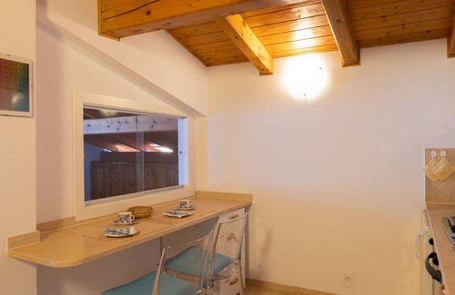1-room apartment 45 m2 on 2nd floor. Bright, with sloping ceilings, comfortable furnishings: living/sleeping room with sloping ceilings, ceiling height 140 - 210 cm with panoramic window with 1 double bed, dining table and satellite TV. Exit to the balcony. Kitchen (oven, 4 gas rings, toaster, kettle, electric coffee machine). Shower/bidet/WC. Gas heating (extra), air-conditioning (extra). Heating available only from 15.10. to 15.04. Small balcony. Balcony furniture. Beautiful panoramic view of the lake and the mountains. Facilities: Internet (WiFi, free). Parking (1 car). Please note: non-smoking house. No mandatory extra charges to be paid on-site except for local tax. IT023014C2DNPU3KZ9