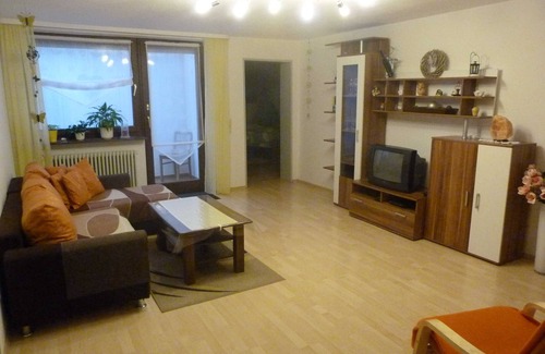 The non-smoking apartment is 80 m² in size and suitable for 2 - 5 people. The apartment has a bedroom with double bed and two single beds, a combined living-sleeping area with a sofa bed for 1 person, a modern fitted kitchen with dishwasher and dining area, and a bathroom with shower, bath, toilet and double sink. In addition, the apartment is equipped with a satellite TV. Towels, bed linen and tea towels are included in the price. There is a free car park in front of the house.