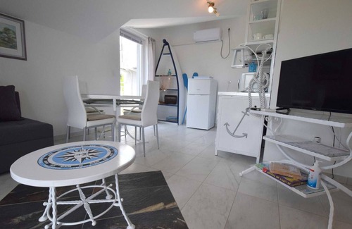 Just 4 km from Malinska, in a peaceful, attractive area of Gabonjin, are the Apartments Dunja, which are ideal for families and environment lovers. Located on the second floor, Apartment Dunja 2 is a roomy 65 square meters that can house up to four people. It has one room with a double bed, one room with twin beds, a dining area, a living room and well-equipped kitchen, a bathroom with a shower and toilet, and a 5-meter-private patio. You can also use the parking lot, air conditioning, satellite TV, WLAN, and communal garden. Pets are not permitted.