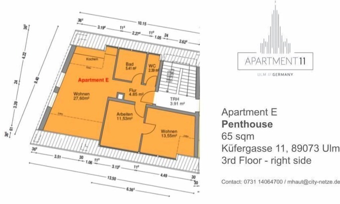 Das Apartment liegt im 3. OG (Dachgeschoss)
