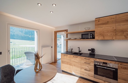 With a view of the Alps, the holiday apartment Edelweiß with step-free interior in St. Martin in Gsies is perfect for a relaxing holiday. The 55 m² property consists of a living room with a sofa bed for 2 people, a kitchen, 1 bedroom and 1 bathroom and can therefore accommodate 4 people. Additional amenities include high-speed Wi-Fi (suitable for video calls) as well as a TV. On top of that, a shared sauna is also provided for your enjoyment. A baby cot is also available. This vacation rental features a private balcony for your evening relaxation.