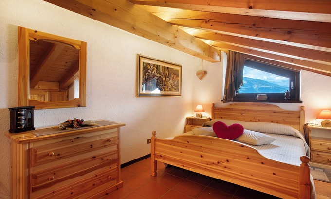 Apartment Mansarda Elois in Gressan provides 60 sqm of space for up to 4 guests. You will find 1 bedroom and 1 living room with sleeping arrangements, plus 1 bathroom. Your stay includes a fully equipped private kitchen for meal preparation. The apartment features mountain view, 2 private balconies where you can relax, WiFi suitable for video calls, and a TV for entertainment. These amenities are available for your exclusive use during your stay.