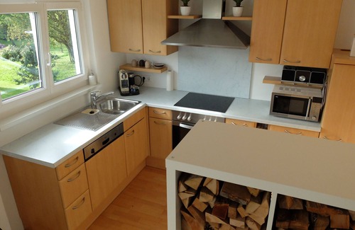 Very large and bright 110m2 apartment incl. Kitchen, living area for relaxing and a large bathing area. The area is very quiet and is on the edge of a nature reserve. Lake Constance is just 4km away. Bathing facilities with public area reachable by bike in 10min. From the large balcony you have a wonderful view of the swiss mountains, the next ski area is only 15km away, Mellau / Damüls is reachable in 40min. The apartment has 1, 2 or 3 bedrooms with single or double beds. There is also a small mini bar.