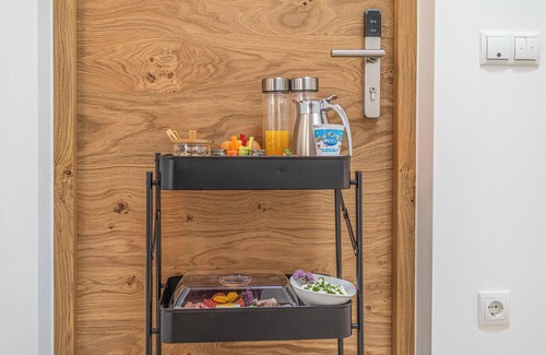 Idyllically surrounded by vineyards and apple trees, the comfortable vacation apartment "Stodl" welcomes you in the South Tyrolean municipality of Partschin at the foot of the Texelgruppe. The modern apartment consists of a living room, a well-equipped kitchen with dishwasher, a bedroom and a bathroom and can accommodate 4 people. Additional amenities include Wi-Fi, air conditioning and underfloor heating in each room, a safe, an electric fireplace and a TV. A baby crib, a children's bed and a highchair are provided upon request. A special luxury is the apartment's private sauna area with Finnish sauna, bio sauna and infrared heater. Here you can relax after an eventful day. Another highlight of the apartment is the balcony, which offers you a beautiful view over the Burggrafenamt and the Vinschgau Valley. The house also has a terrace with sun loungers, which is available to all guests. The area around Partschin is ideal for hiking, biking and climbing. With the Texelbahn, which departs only 1.1km from the accommodation, you can reach the Gigglberg and from there you can hike the popular Meraner Höhenweg. Also recommended is a trip to the Parcines Waterfall, 2.9km away, which has a drop height of 97m. The Burgstallknott climbing garden can be reached in 8 minutes (600m) on foot. The village center with some restaurants, cafes, a bakery and a supermarket is just a few minutes on foot (100m) from the apartment. The resort town of Merano is about 7.5km away and can be reached by car in 10 minutes.