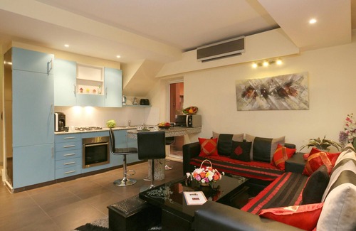 In the heart of downtown Marrakech Gueliz, the apartment has two double bedrooms, which can accommodate 4 people.The apartment has the particularity of being through, balconies on the two opposite facades.You will have 2 elegant bathrooms with shower and a large open kitchen with a granite countertop. You can relax on the balconies of the bedrooms and living room or by watching the many French and international TV channels.A traditional and modern decor at the same time as well as a Wifi Internet access.