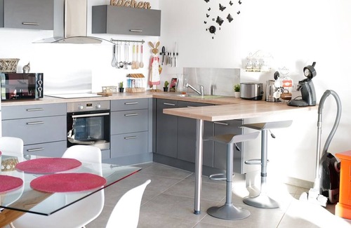 Fully equipped kitchen with oven, microwave, hob, dishwasher, small appliances .....