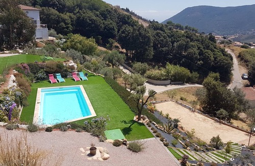 Totally unobstructed view of the sea and the mountains, S / W exposure with sunshine all day, new apartment, ground floor of the villa, all comfort.