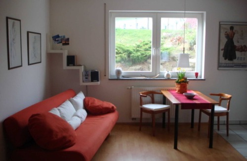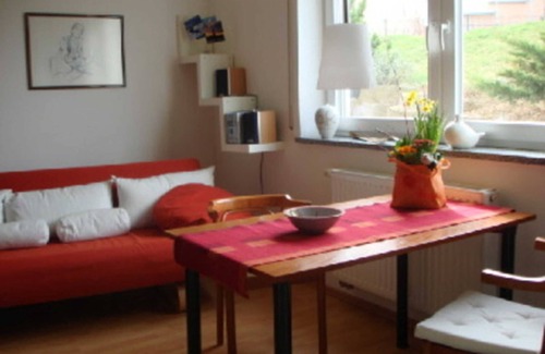 The non-smoking apartment Feininger has a separate entrance and is about 50 m² groß.Sie has a living room with comfortable seating area (sofa bed), dining area, laminate flooring and kitchenette. The separate bedroom with double bed and the spacious bathroom with underfloor heating, bathtub and integrated shower complete the feel-good atmosphere. In the garden is a patio with sunbed and garden furniture ready. Unfortunately pets can not be brought along. Children are especially welcome, they live for free; a travel cot (70 x 140 cm) is provided if required. A free parking space is available on the property.
