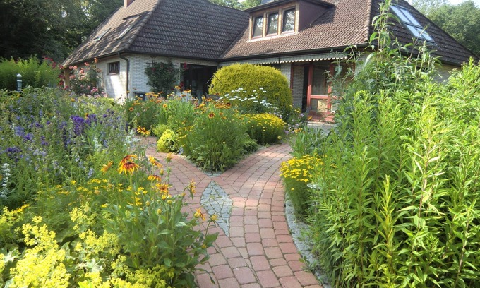 We are Anneli and Wolfgang Hauschild and welcome you to our vacation apartments Birkenallee. Our cozy village Deinste belongs to the municipality of Fredenbeck in the district of Stade. The place is characterized by modern agriculture and idyllic landscape. Our house in Birkenallee is located on a 25,000 m² natural property with a beautiful large flower garden. It is located directly next to the nature reserve and on the route of the historic "Moorexpress-Bahn", which runs from Stade to Worpswede and on to Bremen. The house was built in 1966 and was completely renovated and converted into three stylish vacation apartments in 2013.