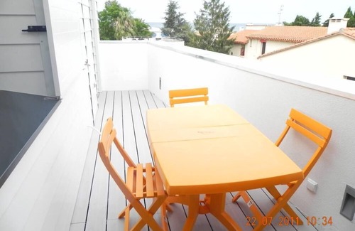- T2 37 m² in a protected cove, terrace, small garden, mountain view.