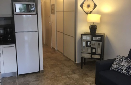 (Text automatically translated) In a luxury residence, beautiful apartment for 4 people with a fully equipped kitchen, a dining room area (wall-mounted LCD screen), a bedroom and a bathroom, terrace with garden furniture and sun with mountain views, private garage. Quiet, located close to all the shops and the beach.