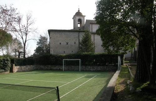 (Text automatically translated) The Convent of San Francesco is located just outside the medieval walls that surround Lugnano a 15-minute walk from the town center, shops and supermarket. Lugnano, ranked among the "most beautiful villages in Italy '", 450 meters above sea level, it enjoys a beautiful view over the Tiber valley and medieval sites of Umbria and Lazio, is a country "noble" with many palaces important and churches (including the Collegiate Church of 'Assumption is among the most beautiful Romanesque churches in Italy) and two Franciscan monasteries (St. Francis and the Capuchin Monastery where a restaurant and a hotel). In the convent of San Francesco is a church founded in 1200 to celebrate the miracle of the wolf St. Francis made in this area and then enlarged in 1500 where there are many affreshi of 1200 and 1600 and a beautiful wooden crucifix, where the Friars celebrate Sunday mass. Adjacent to the church is a beautiful cloister with frescoes of the life of St. Francis and Via Crucis.