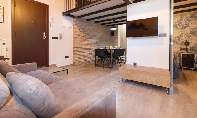 The apartment has Wi-Fi and air conditioning and heating, there is a very large extra fan to give help and support to the top floor. It is bright despite being a ground floor, its industrial style decoration makes it a very cozy, modern and totally different place. There are no stairs except those that lead to the double room, nor is the elevator necessary to access the apartment, which makes it very comfortable.