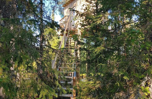 Discover a unique experience at the Aurora Lodge holiday flat, an exclusive treehouse accommodation in the heart of northern Sweden's unspoilt nature. Perfect for adventure seekers and nature lovers looking for a break, this special accommodation is located 50 kilometres from Arvidsjaur and offers impressive views of the world of the Northern Lights and Sweden's wildlife, right from your bed. A rare opportunity to sleep 4 metres above the ground and enjoy the beauty of Scandinavian nature.