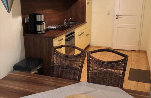 The flat is attractively designed to make your experience as pleasant as possible. With its open-plan living and sleeping area under old beams, it radiates a warm and inviting atmosphere. The large eat-in kitchen is fully equipped and invites you to linger in a cosy atmosphere - whether for a short weekend or a longer stay. The equipment is well thought out and leaves nothing to be desired, from the ceramic hob and filter coffee machine to the mini oven and kettle.