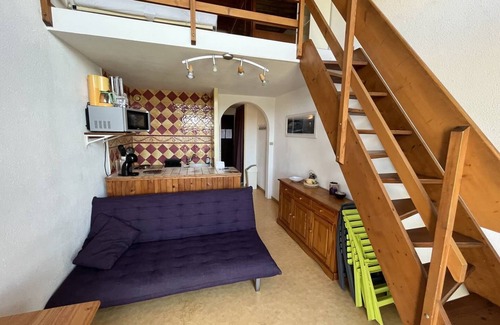 Studio of 30 m², on the 1st and only floor. Composition: A kitchenette with fridge, 2 electric plates and oven, microwave oven. Living room with television. Terrace with garden furniture. Mezzanine with a 140 bed and two bunk beds for children (the stairs are quite steep). Shower room with sink, shower, WC, washing machine. Private parking in the basement.