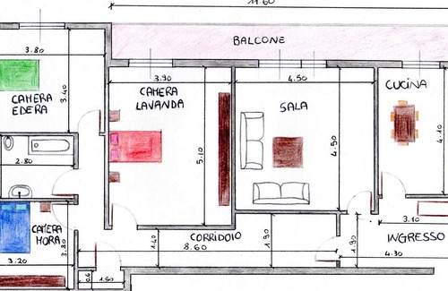 The property is located in Via Cesare Pavese in the central condominium with lift, the apartment is on the 4th floor and was used to accommodate 2 people per room. The rooms are three and have a shared bathroom, plus we have created a common room with two sofas sofas and a large television. We also have the ability to provide a kitchen for those who want to cook a meal.