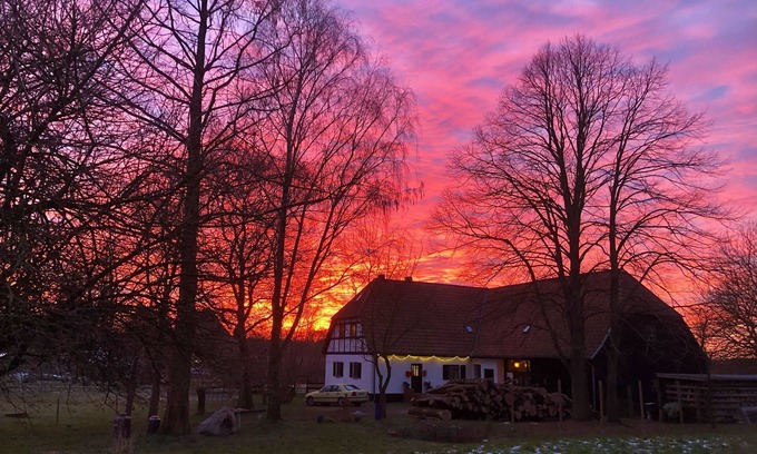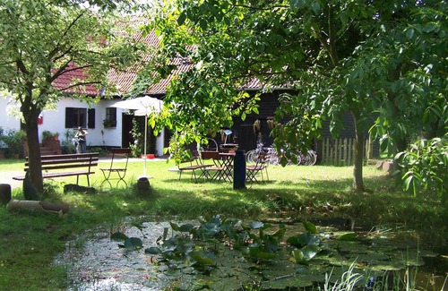 Southeast of Rostock and only nine kilometers from Teterow and 28 km from Güstrow lies this lovely apartment in Bergfeld in a beautiful natural setting. Here you can spend in silence and tranquility of the half-timbered house and the surroundings for a relaxing holiday. The apartment Bergfeld is decorated with light pine wood furniture. In the rooms is wooden floor, in as far as the ridge developed lunchroom and the bathrooms is tiled. The apartment in Bergfeld can be rented with up to 8 people. In the large courtyard benches, garden tables, chairs, umbrellas, barbecue and sandpit available. In the garden there is a fireplace and enough wood. On the property there are sheep and cats. Fresh eggs and honey are there in the neighboring village, garden herbs, lettuce from the garden of the landlord. From this unique property in the middle of the holiday region Mecklenburg-Vorpommern, it is yet not far for a day trip to the beach on the Baltic.