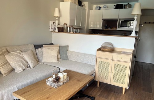 Apartment very well located in the La Forestière residence, pool side, in the heart of the village, close to all shops, 2 minutes walk from the well-known market square. Located upstairs. Interior layout and decoration done with great taste. Recently renovated. On the ground floor, a bright living room with a chaise longue sofa, a lifting coffee table, large TV, electric fireplace, full equipped kitchen, toilet and small entrance. Upstairs, a toilet, a bathroom, a bedroom with a 140 cm bed and a bedroom with two bunk beds.