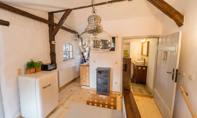 It is a very beautiful and very specially furnished apartment in a quiet location. We also have a big garden. We also have a fireplace. The apartment has about 40m ² a cute kitchen, a very nice bathroom, a large bed and a TV with DVD and a wonderful view of the large garden.