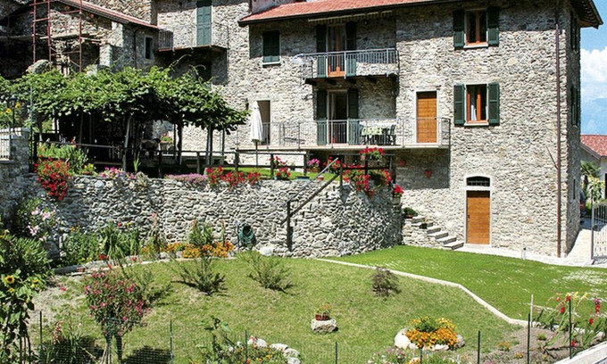 Rustic apartment house. In the hamlet Ghiano 700 m from the centre of Cremia, in a sunny position on a slope, traffic calmed area, 750 m from the lake, in a cul-de-sac. For shared use: terraced garden with flowers and trees. Garden furniture. 50 m long narrow motor access to the house. Parking on the premises. Grocery 1 km, supermarket 4 km, bar 800 m, bus stop 750 m, railway station "Como" 47 km, pebble beach "San Vito" 900 m, outdoor swimming pool 8.5 km. Golf course (18 hole) 17 km. Nearby attractions: Menaggio 11 km, Como 45 km. Please note: car recommended.