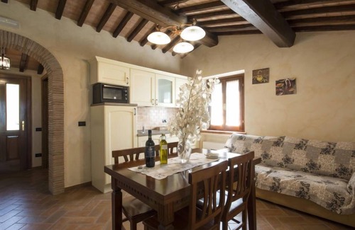 Large working farm 250 m a.s.l., renovated in 2016. 7 apartments in the property. 8.3 km from the centre of Vinci, 16 km from the centre of Pistoia, 50 km from the centre of Firenze, in an elevated position on top of a hill, 64 km from the sea, in the countryside. For shared use: property 5 ha (fenced), swimming pool (15 x 7 m, depth 140 cm, seasonal availability: 06.Apr. - 02.Nov.). WC in the pool area, outdoor shower, hot tub, garden furniture, children's playground (slide, swing). In the complex: table tennis, billiard table. Room cleaning daily on request (extra). Motor access to the house (100 m via unmade road). Parking on the premises. Grocery 1.4 km, supermarket 3 km, bus stop 1.2 km, railway station "Pistoia" 16 km, sandy beach "Versilia" 64 km, thermal baths "Montecatini Terme" 20 km. Golf course (18 hole) 14 km. Nearby attractions: San Miniato 22 km, Carmignano 22 km, Montecarlo 27 km, Collodi 31 km, San Casciano in Val di Pesa 45 km, Pisa 59 km. Please note: the owner lives on the same property. The photograph shows a typical example. Additional accommodations can be booked. Important information: maximum occupancy: 4 adults and 1 child (ren) up to 12 years.