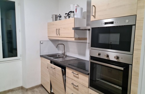 Overlooking the mountain, the holiday apartment Gîte Zen in Carnoules impresses guests with its fantastic views. The 60 m² property consists of a living room with a sofa bed for 2 people, a fully-equipped kitchen, 2 bedrooms and 1 bathroom and can therefore accommodate 2 people. Additional amenities include Wi-Fi, a smart TV with streaming services, a fan, a washing machine as well as a dryer. In addition, a shared gym and gym equipment are available for your use. A baby cot and a high chair are also available.
