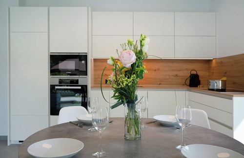 The holiday apartment "Haus Weinblick Apt 3" is located in Margreid and impresses guests with its view of the mountain. This 77 m² property consists of a living room, a fully-equipped kitchen with dishwasher, 2 bedrooms, and 2 bathrooms ,and can therefore accommodate 4 people. Additional amenities include high-speed Wi-Fi (suitable for video calls) with a dedicated workspace for home office, a washing machine, a dryer, air conditioning, cable and satellite TV as well as children's books and toys. A baby cot and a high chair are also available.