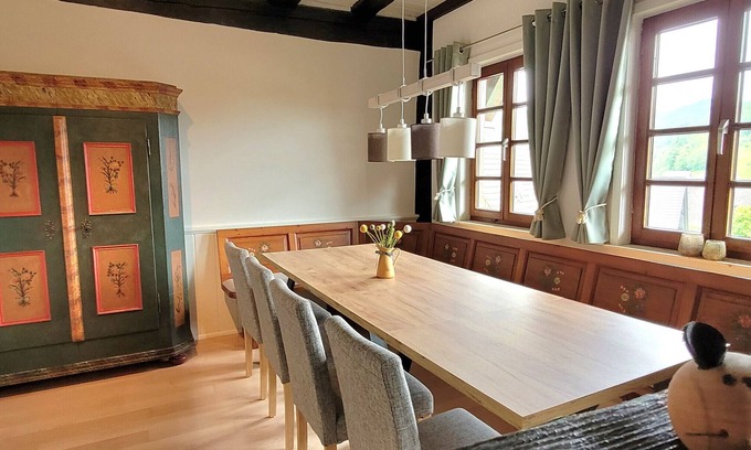 In Oppenau, the holiday apartment Ferienwohnung Höflehube offers an excellent view of the mountain. The 184 m² property consists of a living room with 2 sofa beds for one person each, a well-equipped kitchen, 4 bedrooms and 3 bathrooms and can therefore accommodate 10 people. Additional amenities include high-speed Wi-Fi (suitable for video calls) with a dedicated workspace for home office, a smart TV with streaming services, a washing machine as well as children's books and toys. A baby cot and a high chair are also available. This vacation rental features a private balcony for your evening relaxation.