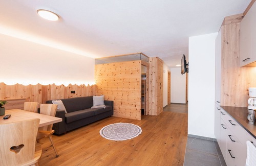 The holiday apartment Huberhof Arnika with step-free interior is located in Riomolino and boasts a beautiful view of the Alps. The 55 m² property consists of a living room with a sofa bed for 2 people, a kitchen, 2 bedrooms and 1 bathroom and can therefore accommodate 6 people. Additional amenities include high-speed Wi-Fi (suitable for video calls) as well as a TV. A baby cot and a high chair are also available. This vacation rental features a private covered terrace for relaxing evenings.