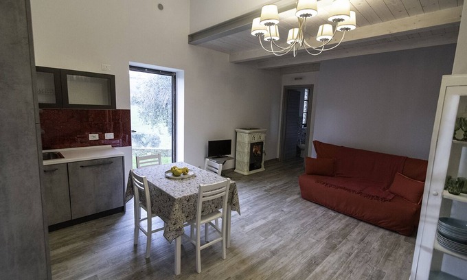 The "Il Giardino" Apartment is an independent construction of new construction with stones of the place and in style with the other buildings, consisting of double bedroom on the ground floor, double bedroom in the loft, a bathroom, living room with kitchenette and sofa bed for any other 2 places added, exclusive garden.