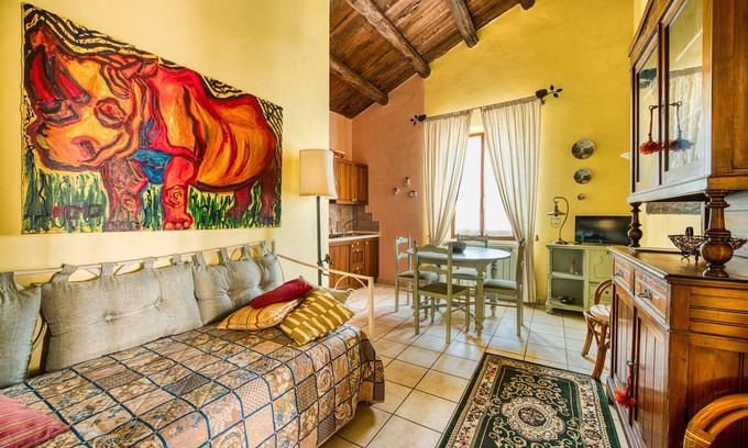 The apartment is set in a renovated old farmhouse just 1 km from Montefalco and within easy reach of the main cities of Umbria. A restaurant is conveniently located only 150 m away, offering dining options close to home.